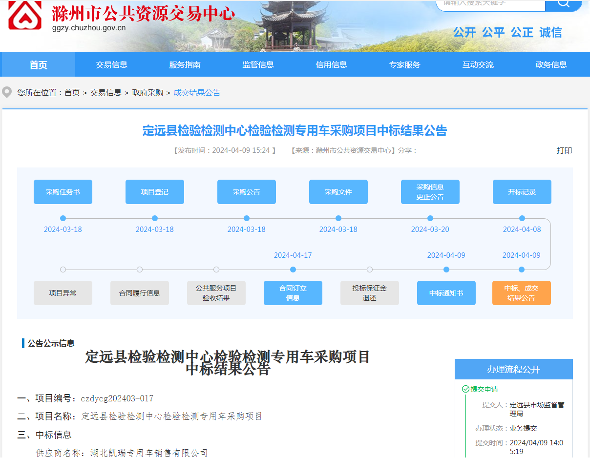 定遠(yuǎn)縣檢驗(yàn)檢測(cè)中心檢驗(yàn)檢測(cè)專用車采購(gòu)項(xiàng)目中標(biāo)結(jié)果公告