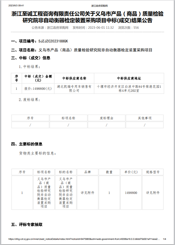 本單位在2023年6月2日義烏市產(chǎn)品(商品)質(zhì)量檢驗(yàn)院非自動衡器檢定裝置采購項(xiàng)目投標(biāo)中有幸獲得中標(biāo)資格。